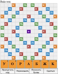 - Буквы имеют разное количество очков, кроме того очки букв размещенных на синем поле